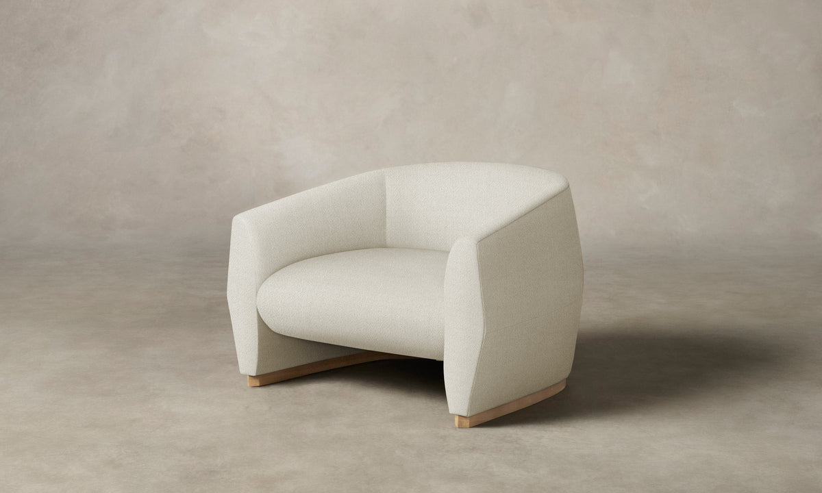The Alpe Chair is a streamlined silhouette with convex wraparound arms that rest upon an elegant white oak or walnut base. The design is cloaked in masterful upholstery with sleek linear seams. Handcrafted in North Carolina.