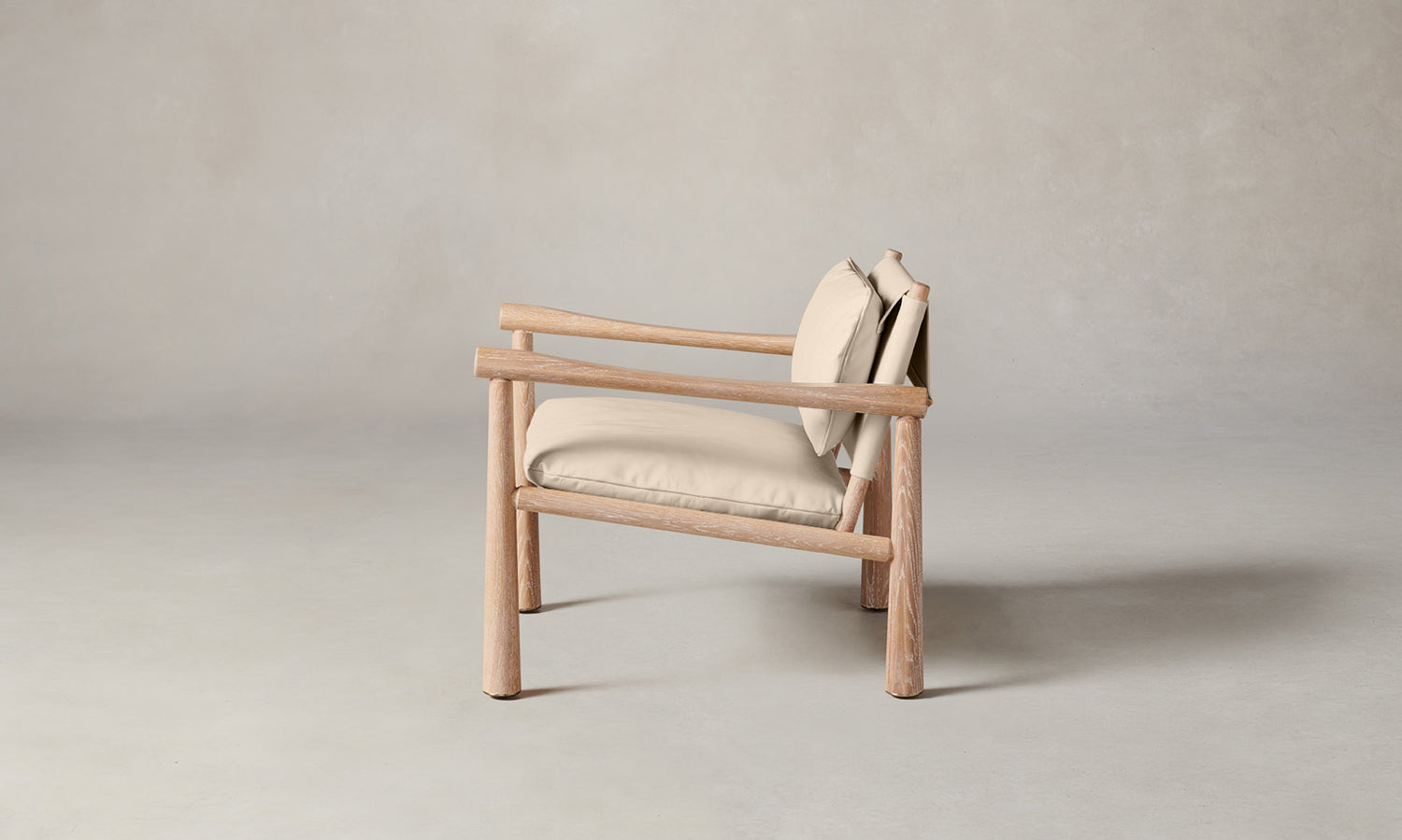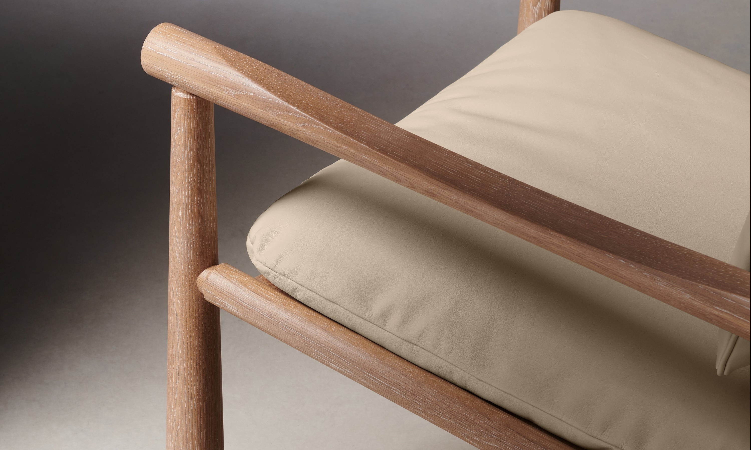 With decadent materials and details, the Hyde brings a contemporary allure to the classic 19th-century campaign chair. It has a cerused white oak frame, Italian leather seat, and aged brass accents that add a glimmer of opulence. Handcrafted at a family-owned workroom in upstate New York.