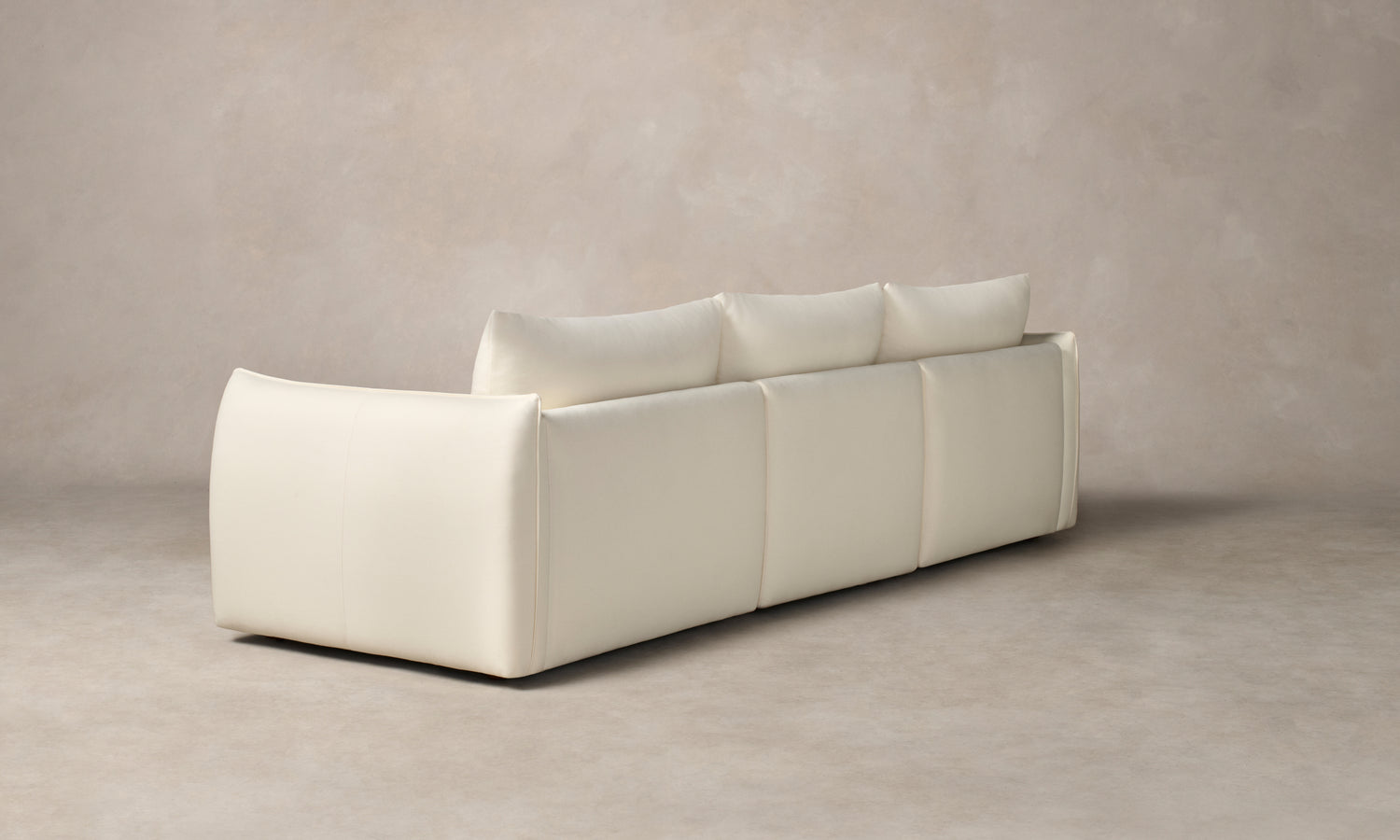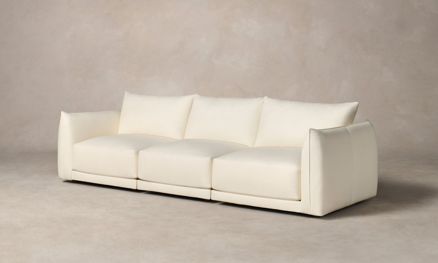 The Jones Sofa's low-lying, modular design recalls silhouettes from the 1970s. It has voluminous cushions and plush arms complete with flange seams for a tailored finish. Handcrafted in North Carolina.