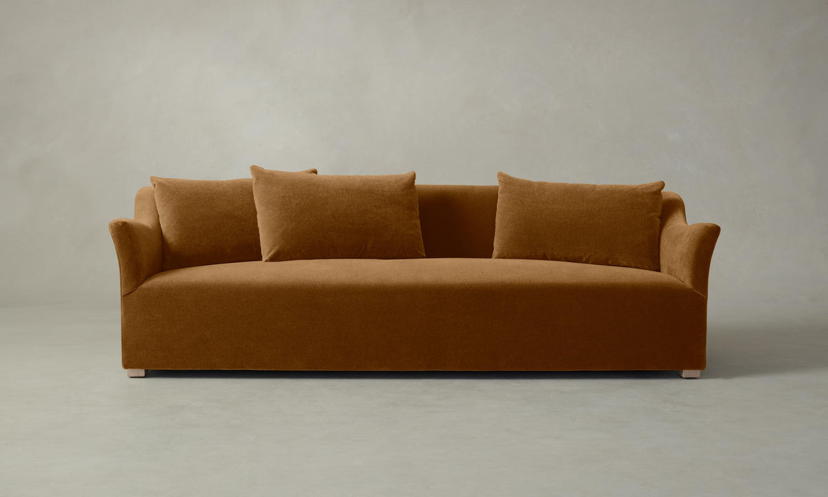 The Lenox Sofa is distinguished by its flared silhouette and sloped arms—together, they extend an invitation to relax. The frame is tightly upholstered and set upon recessed legs. Handcrafted in North Carolina.