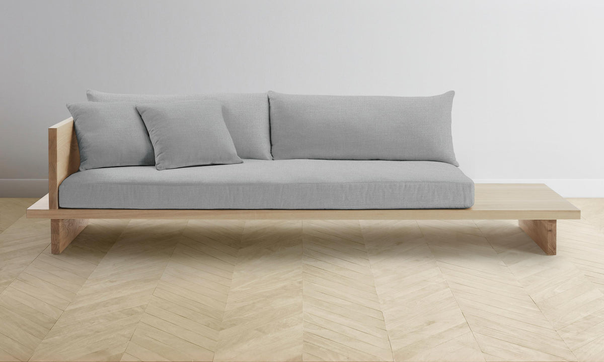 From the woodwork to the tailoring, every element of the Muir Sofa is a display of exquisite artisanship. Its angular frame extends beyond the seat cushion, allowing space for decorative objects or necessities. Handcrafted in North Carolina.