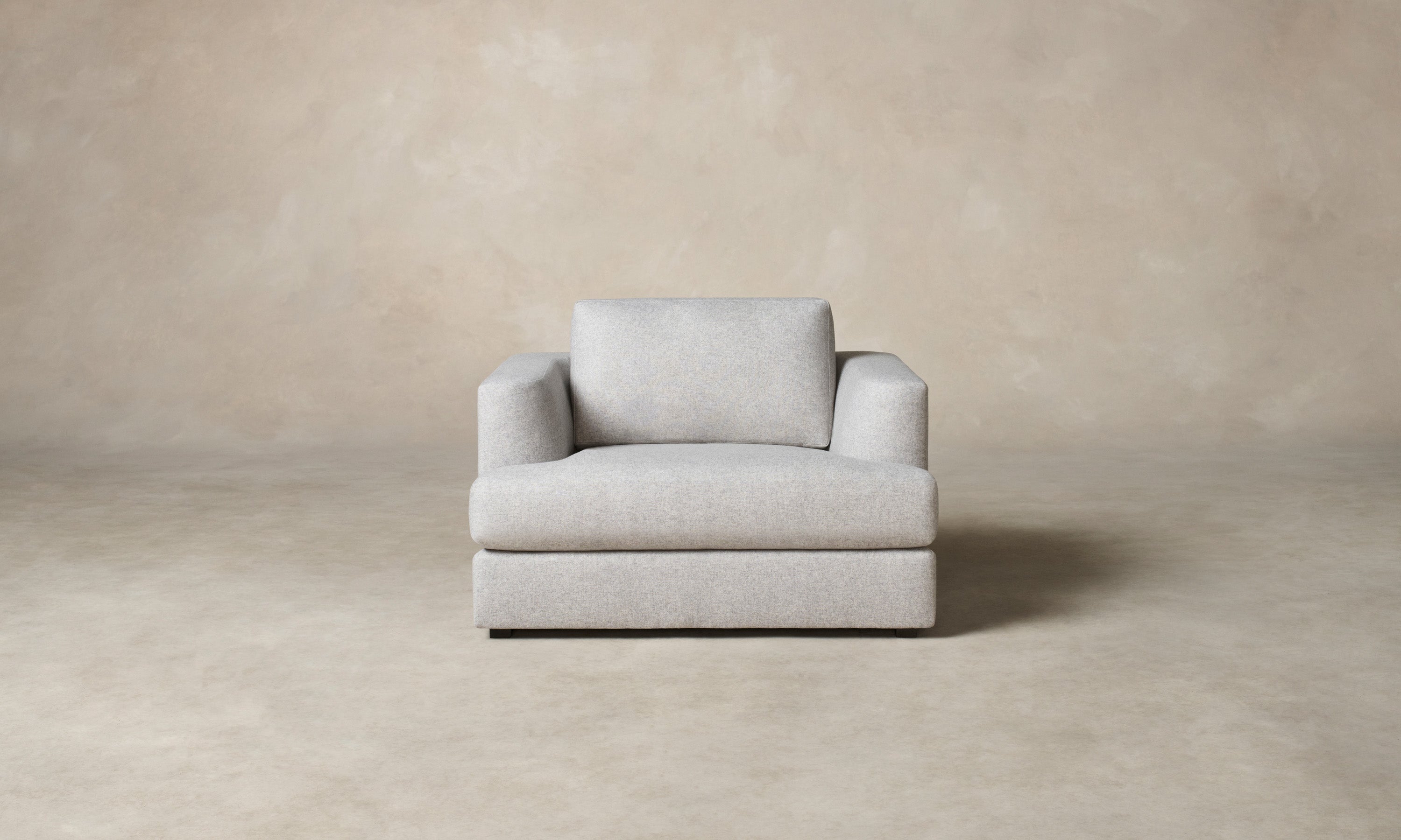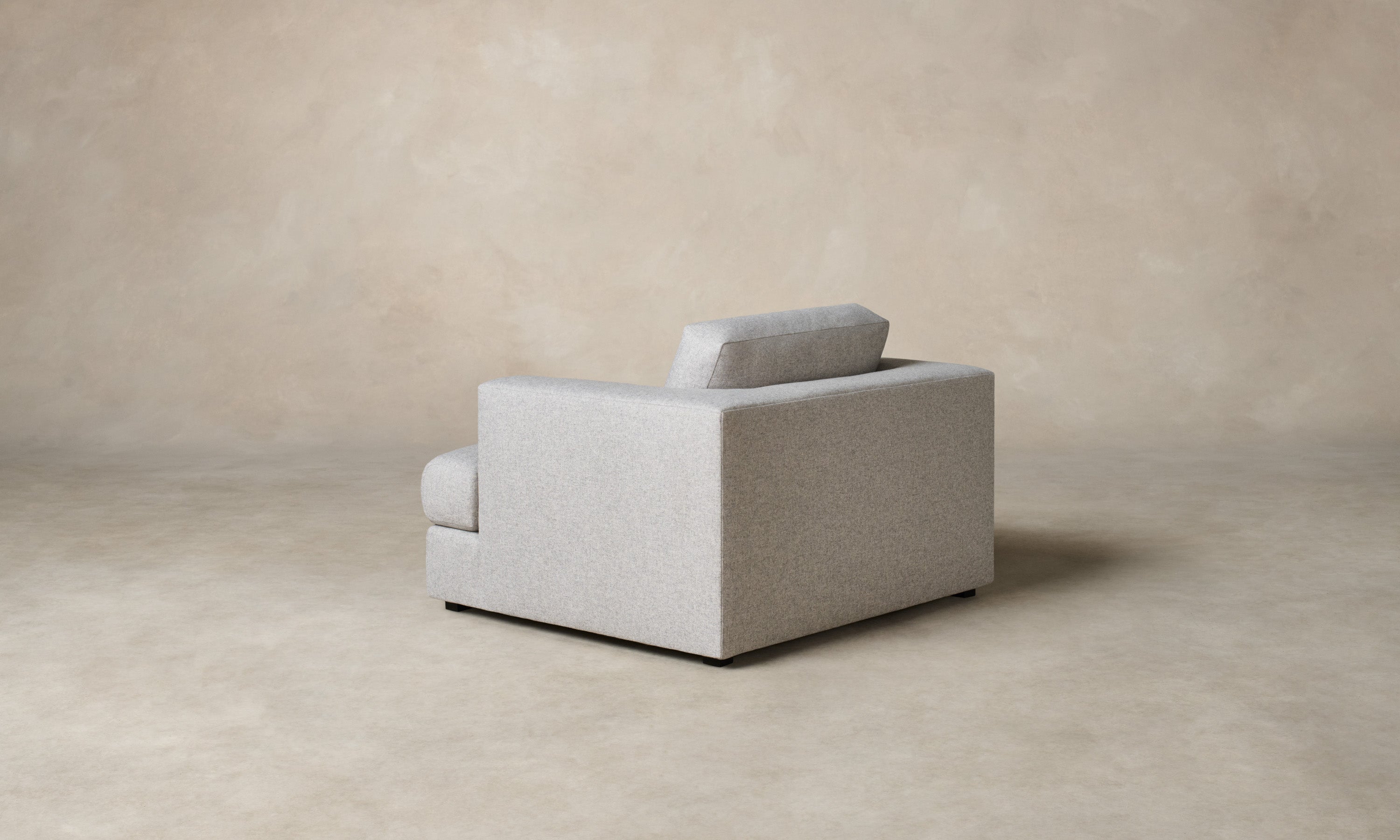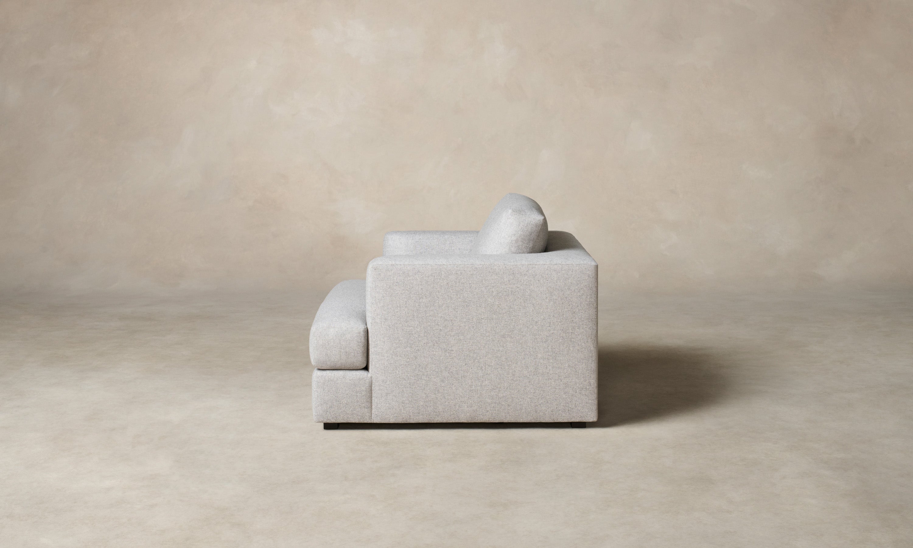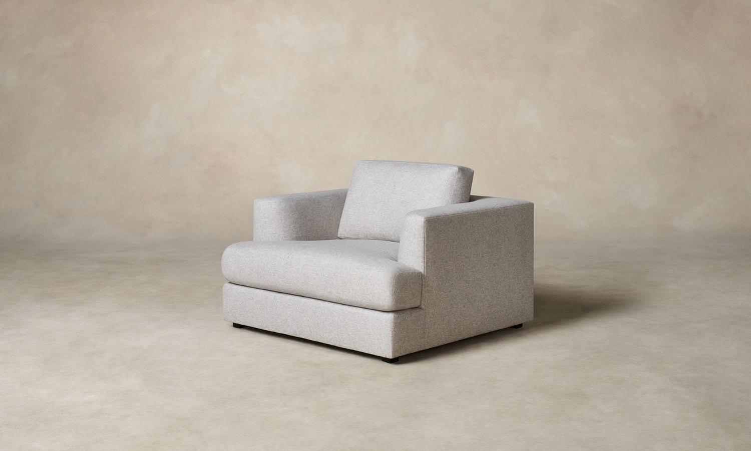With bold proportions and a low-lying silhouette, the Varick Chair-and-a-Half makes a contemporary statement. Its generous arms and deep seat envelop the body, while impeccable upholstery offers a sleek finish. Handcrafted in North Carolina.