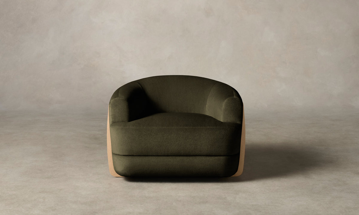 The Vera Chair pays homage to the soft and sensual lines of early Art Deco seating. It has smooth wraparound arms and a voluminous seat mounted on planar legs. Handcrafted in North Carolina.