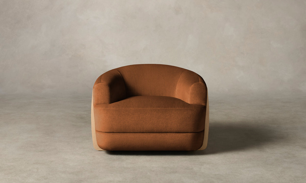 The Vera Chair pays homage to the soft and sensual lines of early Art Deco seating. It has smooth wraparound arms and a voluminous seat mounted on planar legs. Handcrafted in North Carolina.