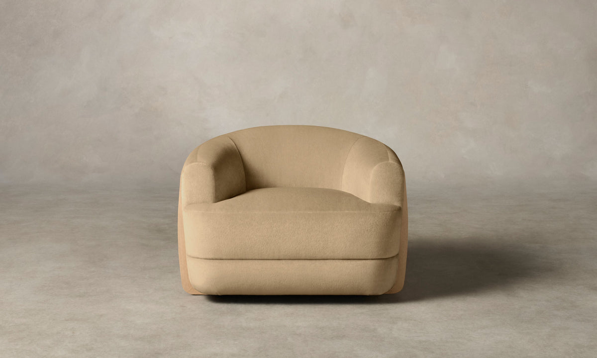 The Vera Chair pays homage to the soft and sensual lines of early Art Deco seating. It has smooth wraparound arms and a voluminous seat mounted on planar legs. Handcrafted in North Carolina.