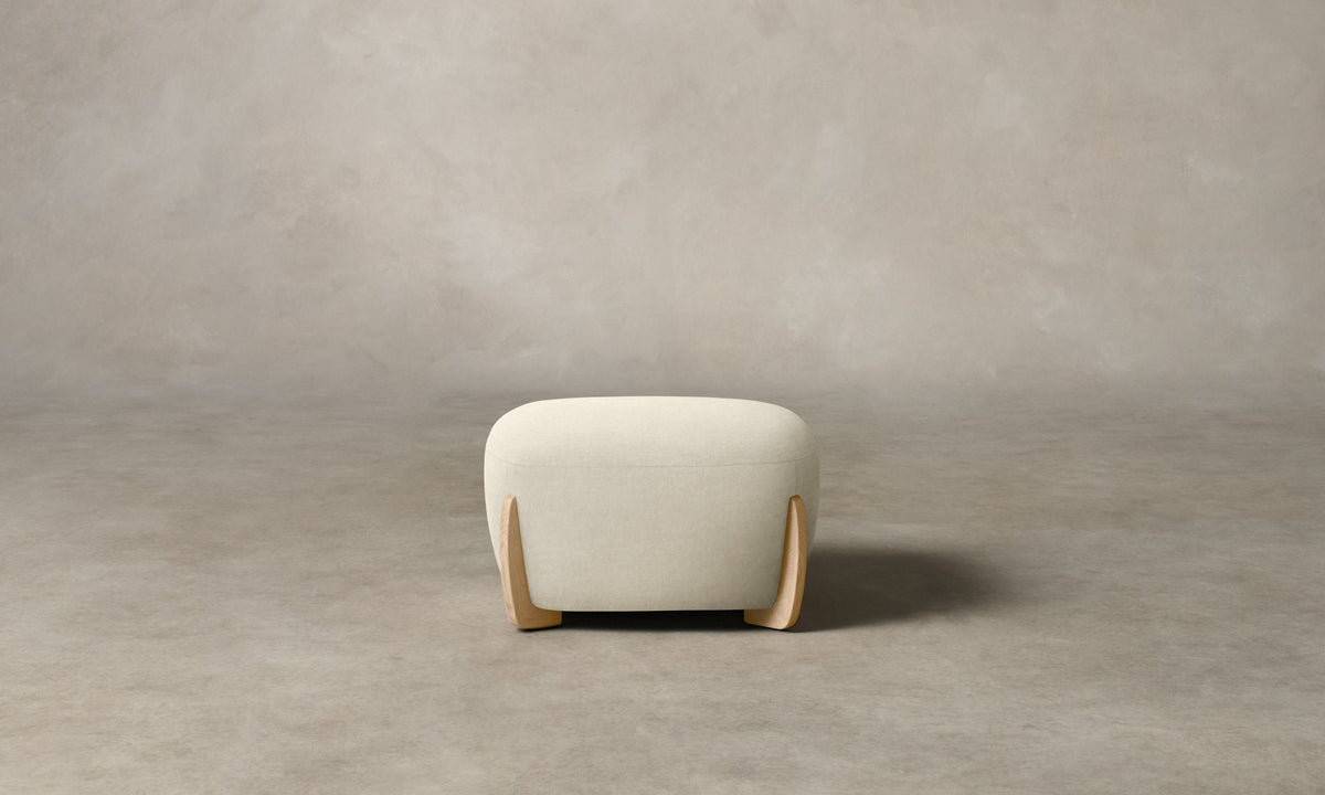 The Vera Ottoman pays homage to the soft and sensual lines of early Art Deco seating. It has a voluminous seat that is masterfully upholstered and mounted on planar legs. Handcrafted in North Carolina.