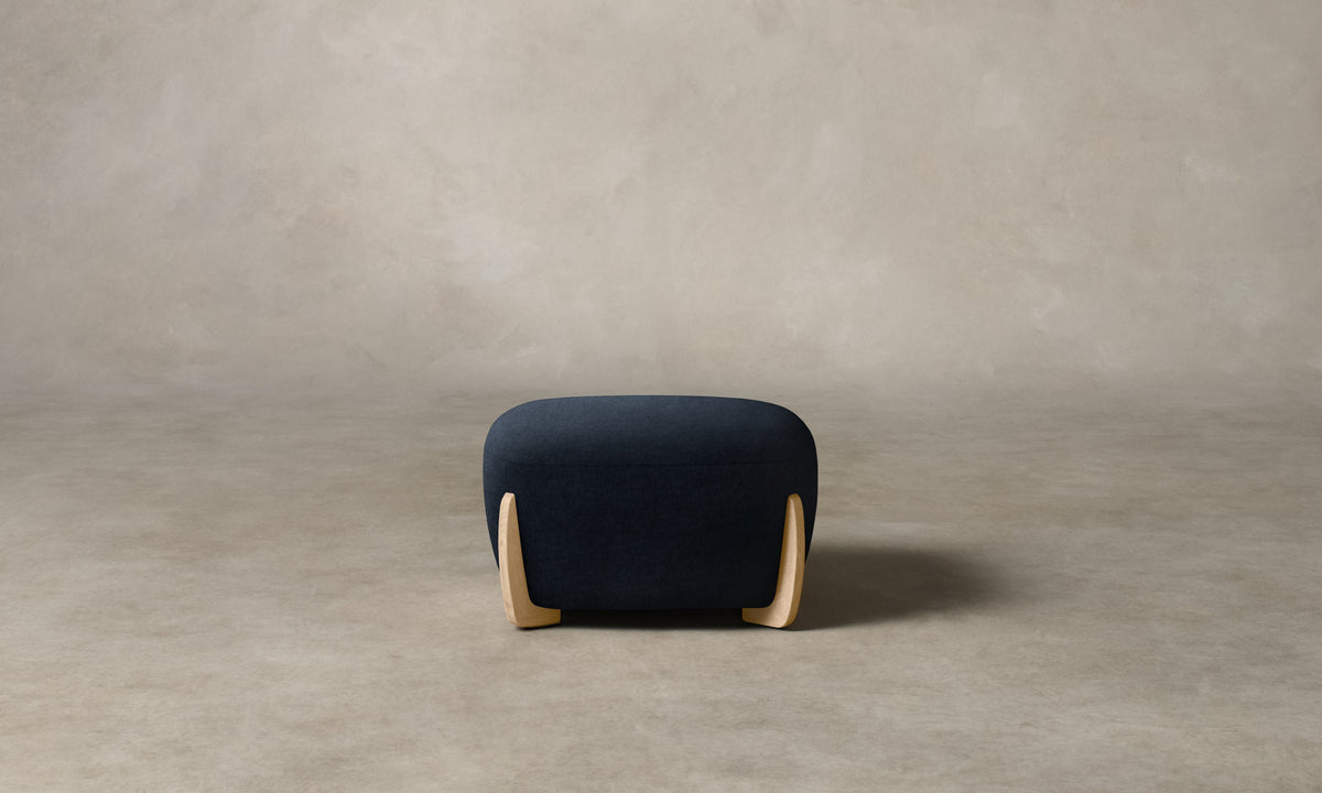 The Vera Ottoman pays homage to the soft and sensual lines of early Art Deco seating. It has a voluminous seat that is masterfully upholstered and mounted on planar legs. Handcrafted in North Carolina.