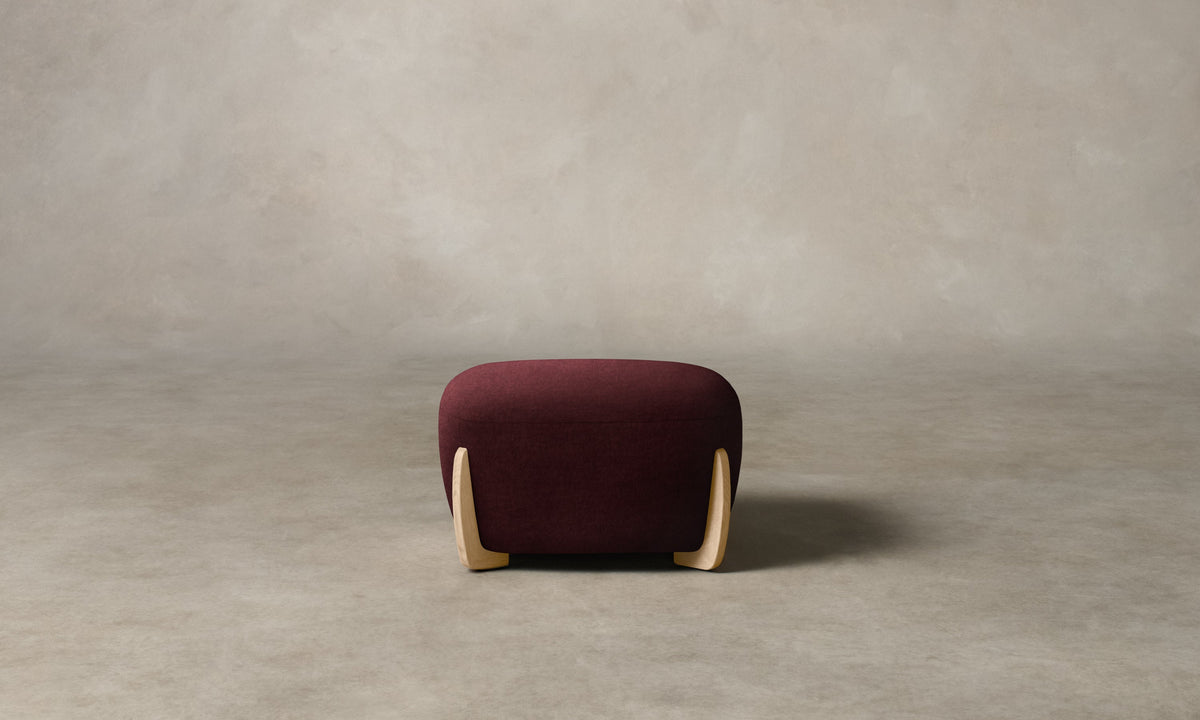The Vera Ottoman pays homage to the soft and sensual lines of early Art Deco seating. It has a voluminous seat that is masterfully upholstered and mounted on planar legs. Handcrafted in North Carolina.