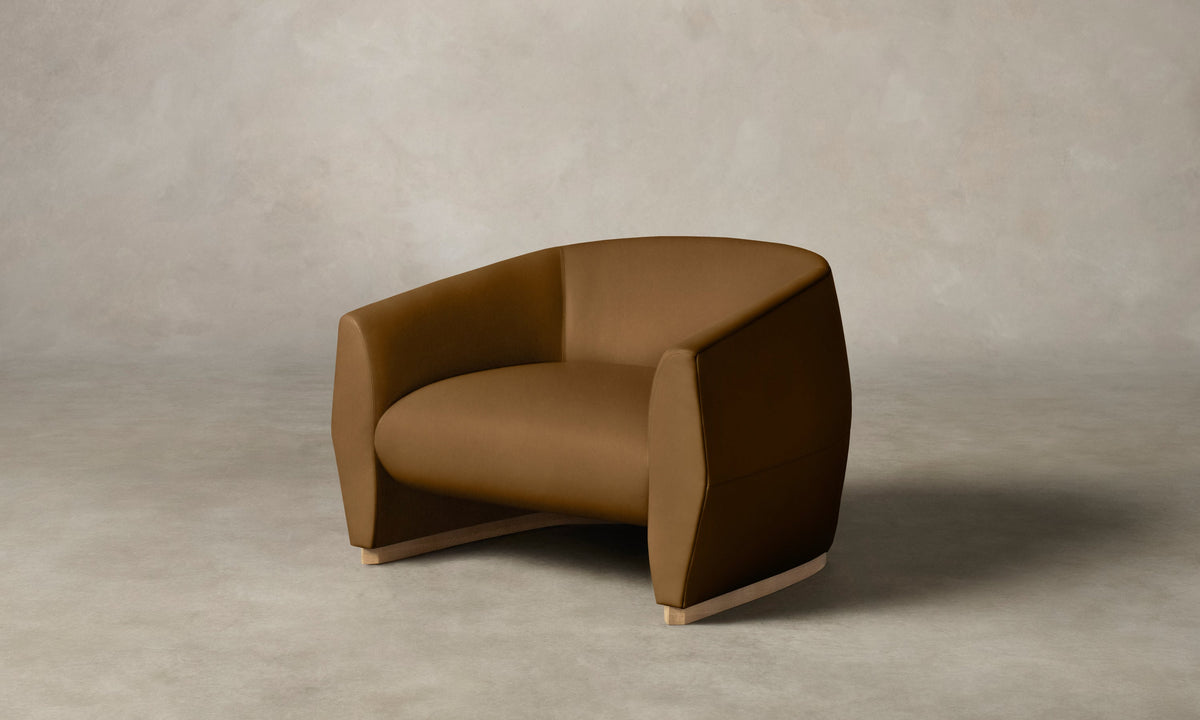The Alpe Chair is a streamlined silhouette with convex wraparound arms that rest upon an elegant white oak or walnut base. The design is cloaked in masterful upholstery with sleek linear seams. Handcrafted in North Carolina.