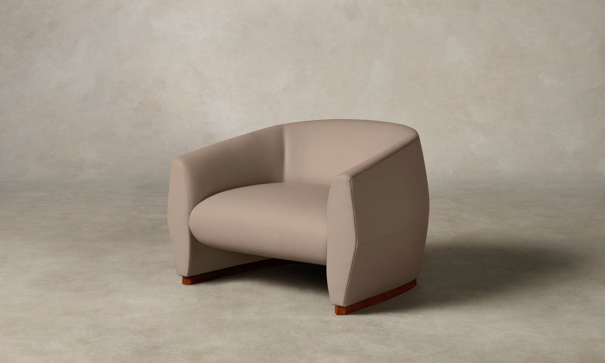 The Alpe Chair is a streamlined silhouette with convex wraparound arms that rest upon an elegant white oak or walnut base. The design is cloaked in masterful upholstery with sleek linear seams. Handcrafted in North Carolina.