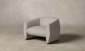 The Alpe Chair is a streamlined silhouette with convex wraparound arms that rest upon an elegant white oak or walnut base. The design is cloaked in masterful upholstery with sleek linear seams. Handcrafted in North Carolina.