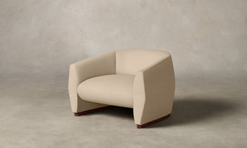 The Alpe Chair is a streamlined silhouette with convex wraparound arms that rest upon an elegant white oak or walnut base. The design is cloaked in masterful upholstery with sleek linear seams. Handcrafted in North Carolina.