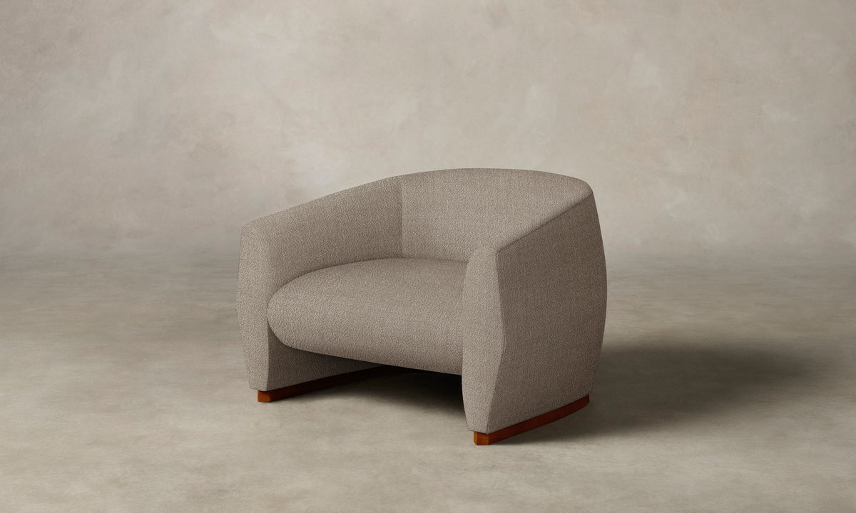 The Alpe Chair is a streamlined silhouette with convex wraparound arms that rest upon an elegant white oak or walnut base. The design is cloaked in masterful upholstery with sleek linear seams. Handcrafted in North Carolina.