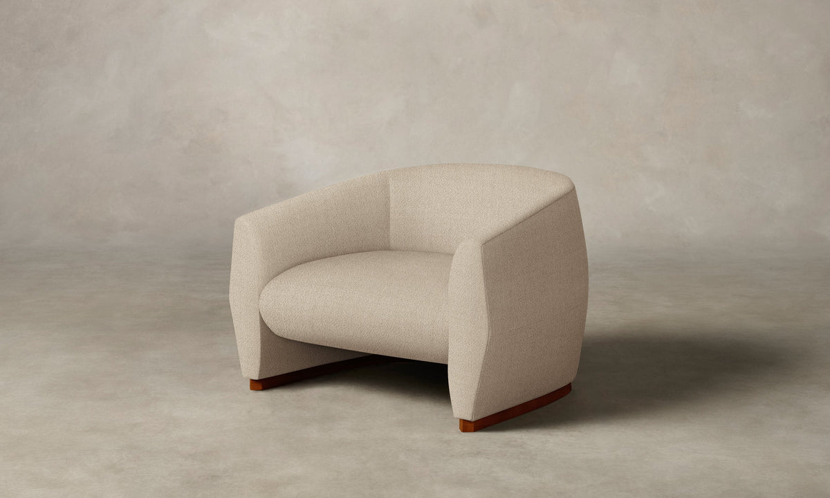 The Alpe Chair is a streamlined silhouette with convex wraparound arms that rest upon an elegant white oak or walnut base. The design is cloaked in masterful upholstery with sleek linear seams. Handcrafted in North Carolina.