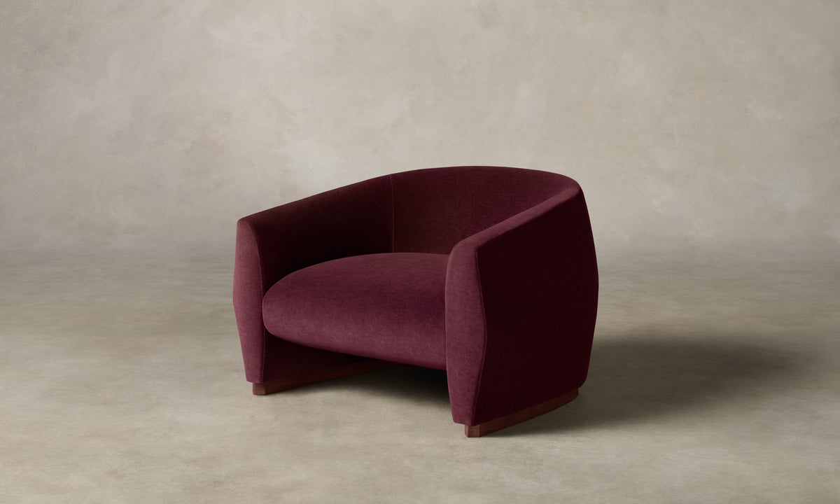 The Alpe Chair is a streamlined silhouette with convex wraparound arms that rest upon an elegant white oak or walnut base. The design is cloaked in masterful upholstery with sleek linear seams. Handcrafted in North Carolina.