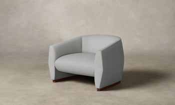 The Alpe Chair is a streamlined silhouette with convex wraparound arms that rest upon an elegant white oak or walnut base. The design is cloaked in masterful upholstery with sleek linear seams. Handcrafted in North Carolina.