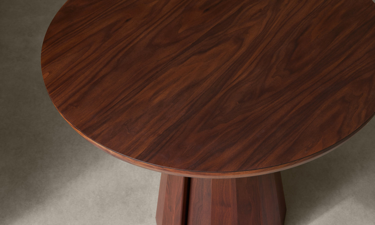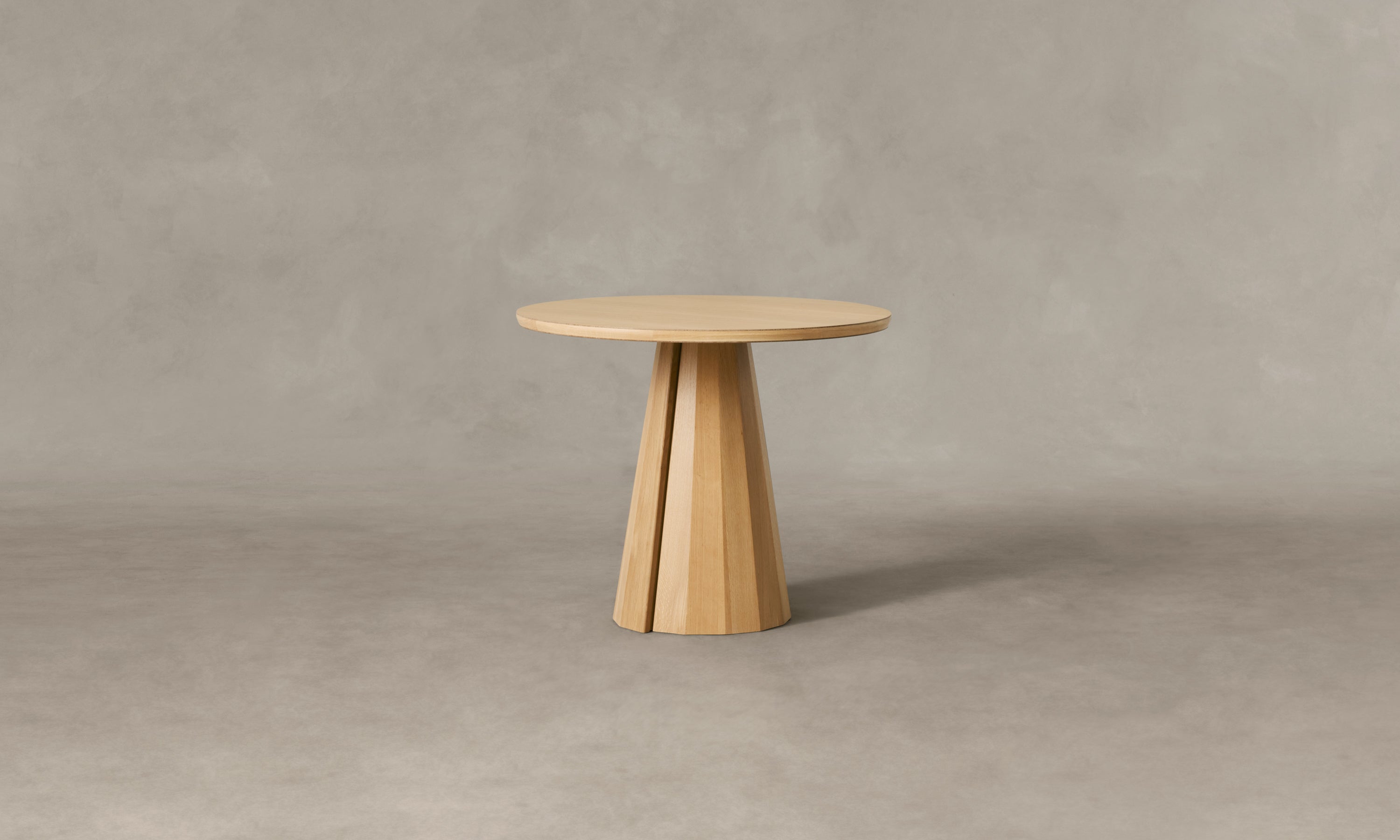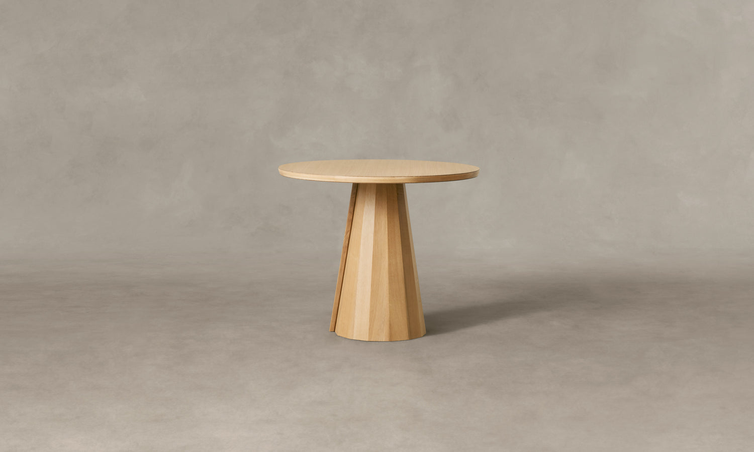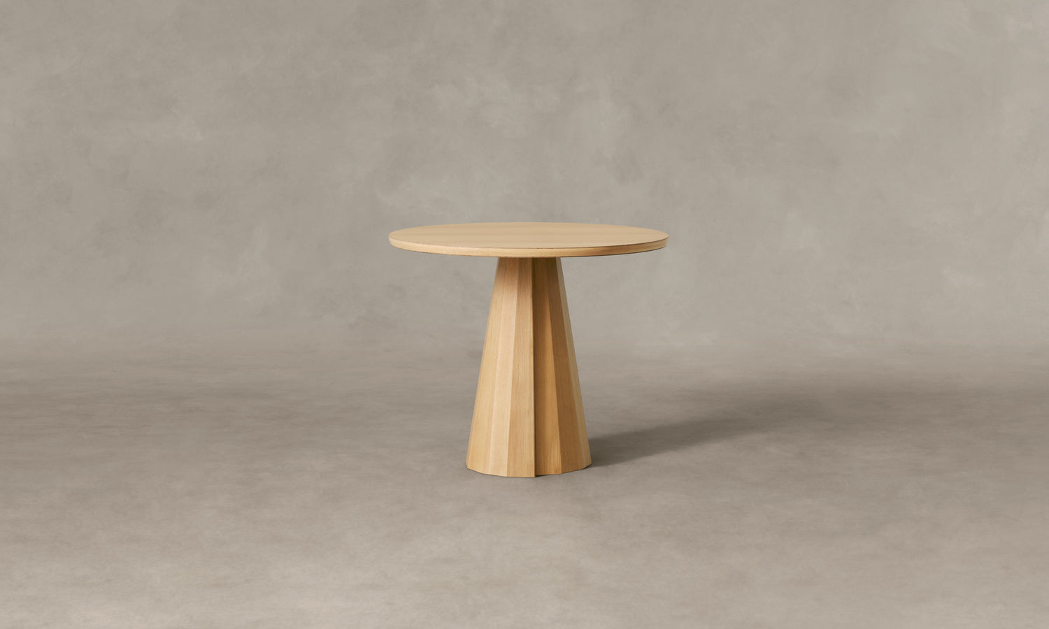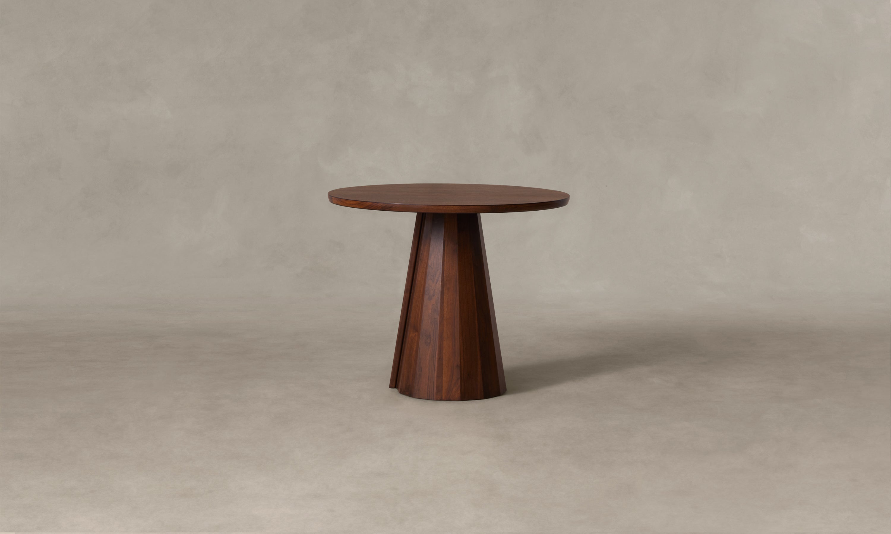 A striking piece for the dining room or entryway, the Bank Café Table boasts a beveled-edge tabletop and conical base encircled by facets and a distinctive overlap. Handcrafted at a family-owned workroom in upstate New York.