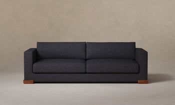 The Blair Sofa injects contemporary sophistication into a traditional silhouette. With a rectilinear frame and wide track arms, it has plush cushions cloaked in neat upholstery and rests upon bold white oak or walnut legs. Handcrafted in North Carolina.