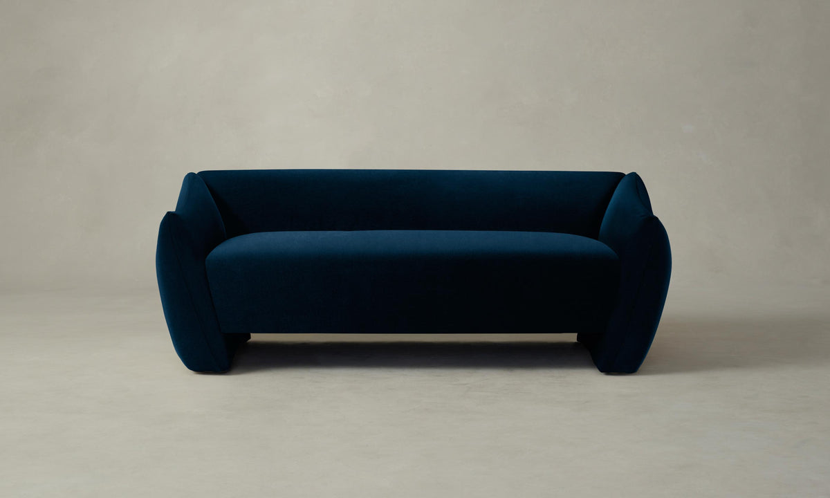 Informed by the curvaceous shapes of postmodernist design, the Bond Settee features a flared silhouette with all-around upholstery and cushioning for a comfortable sit. Handcrafted in North Carolina.