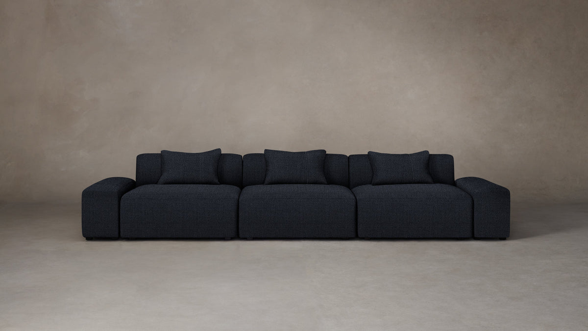 The Breuer Modular Sofa draws inspiration from the bold and graphic shapes of brutalist design. Tightly upholstered for a sleek look, it has a low-lying seat accompanied by plush throw pillows. Handcrafted in North Carolina.