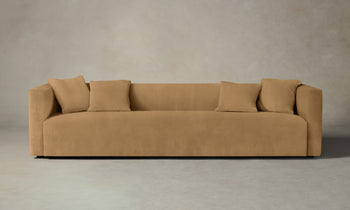 The Breuer Sofa draws inspiration from the bold and graphic shapes of brutalist design. Tightly upholstered for a sleek look, it has a low-lying seat accompanied by plush throw pillows. Handcrafted in North Carolina.