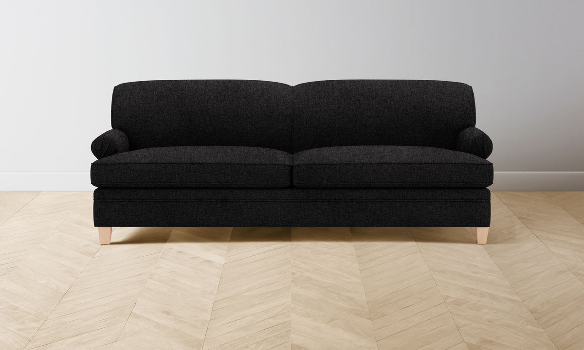 Neatly tailored and detailed with fan-pleated arms, the Carmine Sofa casts an air of elegance upon your space. It sits on tapered wood legs that round out the design’s polished appeal. Handcrafted in North Carolina.