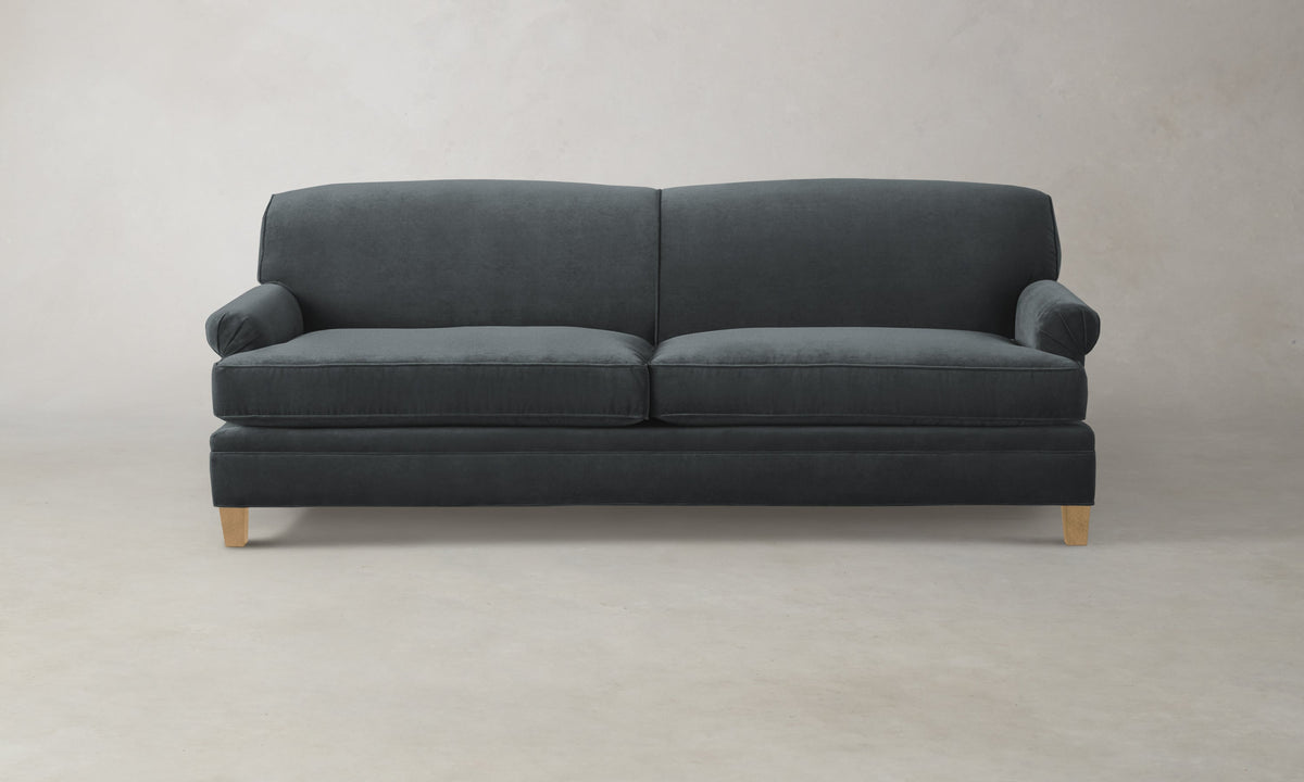 Neatly tailored and detailed with fan-pleated arms, the Carmine Sofa casts an air of elegance upon your space. It sits on tapered wood legs that round out the design’s polished appeal. Handcrafted in North Carolina.