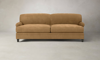 Neatly tailored and detailed with fan-pleated arms, the Carmine Sofa casts an air of elegance upon your space. It sits on tapered wood legs that round out the design’s polished appeal. Handcrafted in North Carolina.