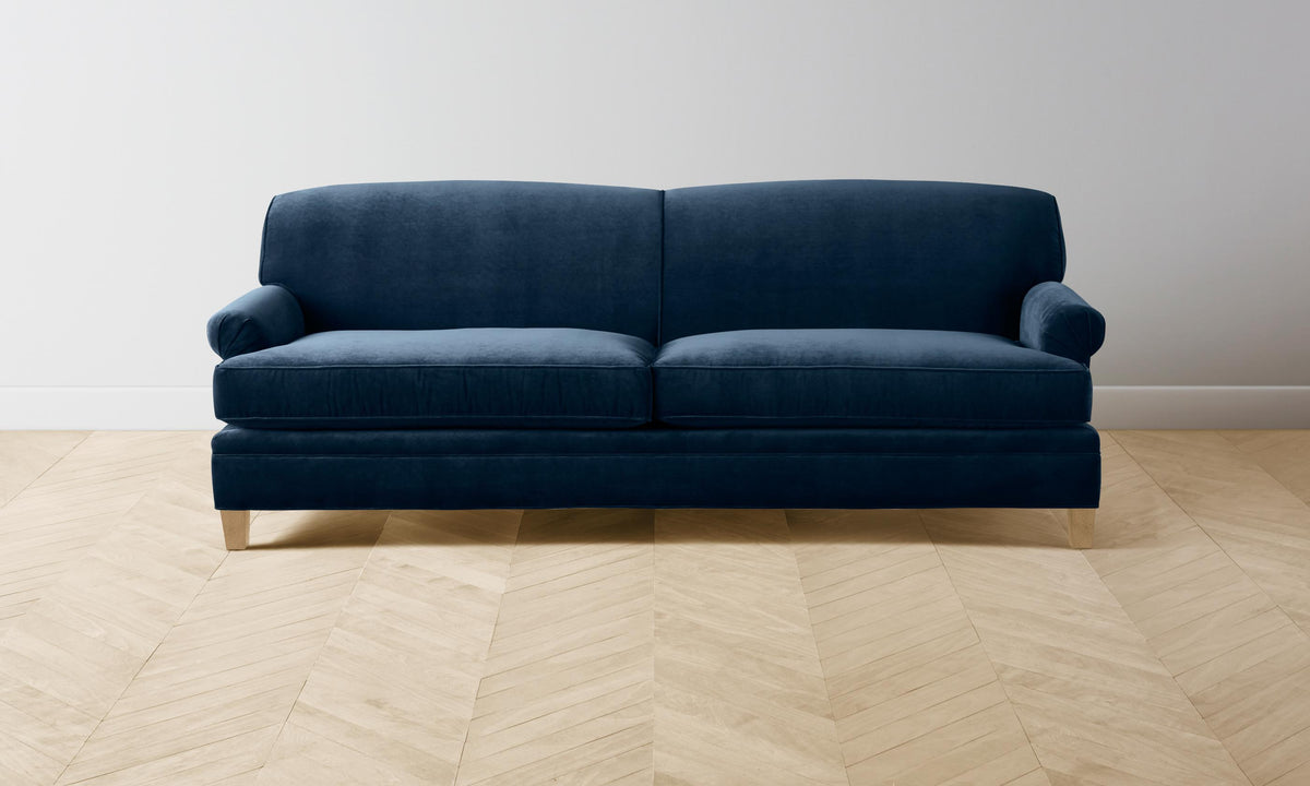 Neatly tailored and detailed with fan-pleated arms, the Carmine Sofa casts an air of elegance upon your space. It sits on tapered wood legs that round out the design’s polished appeal. Handcrafted in North Carolina.