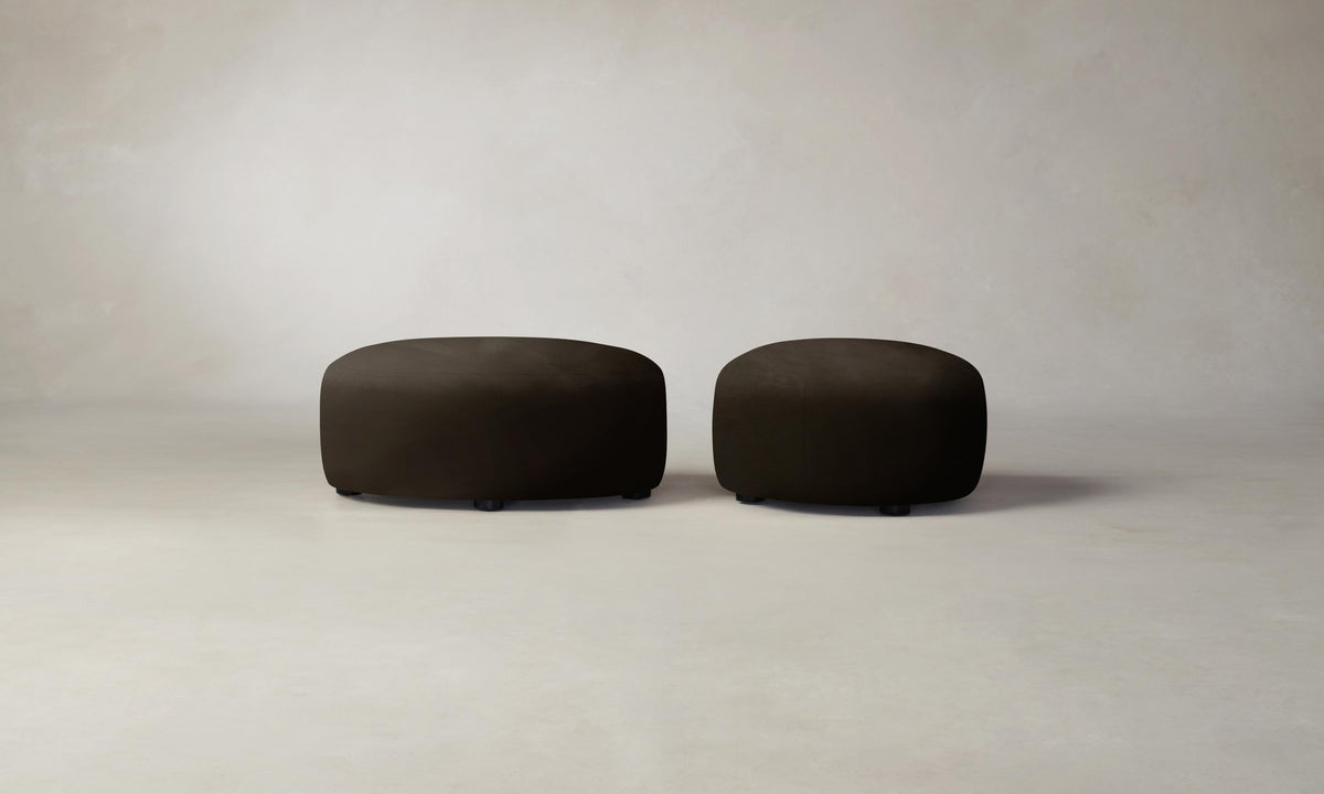 The Chelsea Ottoman's rounded silhouette imbues your space with softness and warmth. The design is tightly upholstered and set on recessed legs for a floating effect. Handcrafted in North Carolina.