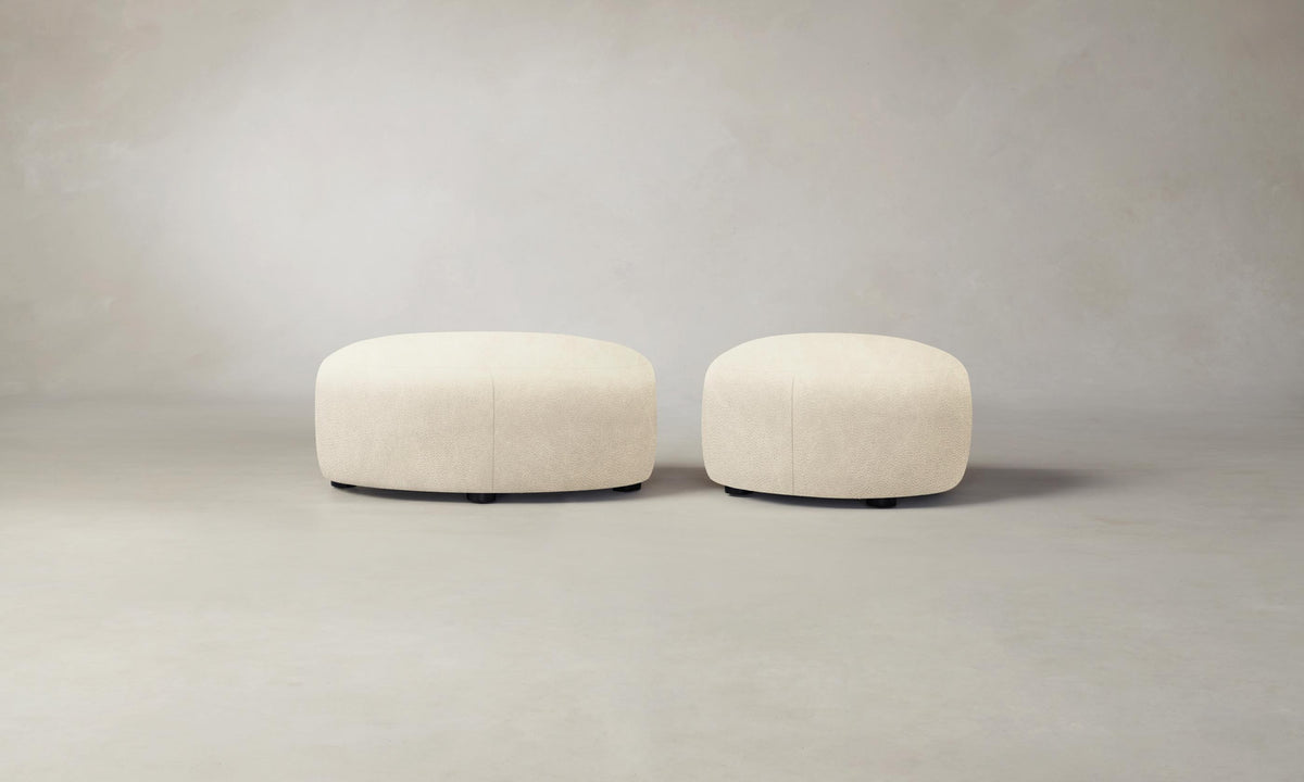 The Chelsea Ottoman's rounded silhouette imbues your space with softness and warmth. The design is tightly upholstered and set on recessed legs for a floating effect. Handcrafted in North Carolina.
