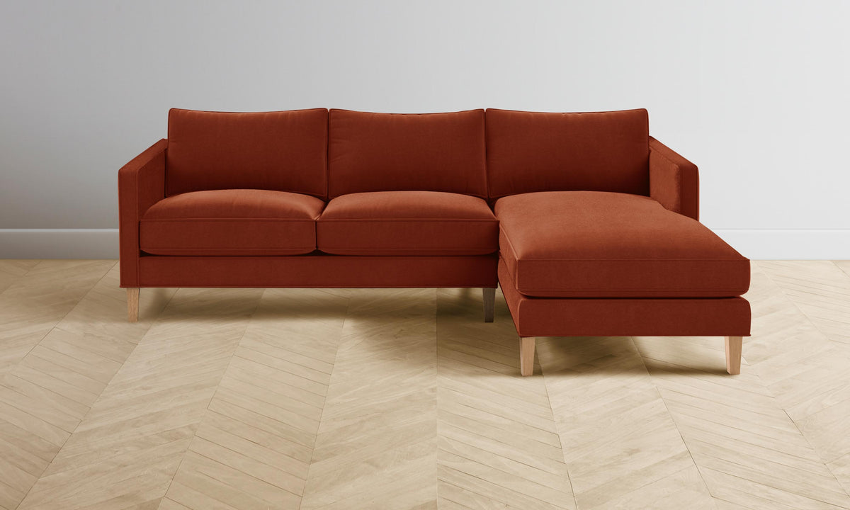 The Crosby Sectional is a testament to the charm of simplicity. With a slender profile that suits spaces small and large, the design is neatly upholstered with cord welts and sits atop tapered legs. Handcrafted in North Carolina.