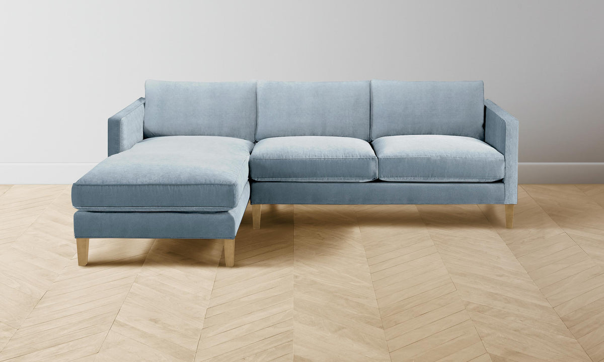The Crosby Sectional is a testament to the charm of simplicity. With a slender profile that suits spaces small and large, the design is neatly upholstered with cord welts and sits atop tapered legs. Handcrafted in North Carolina.