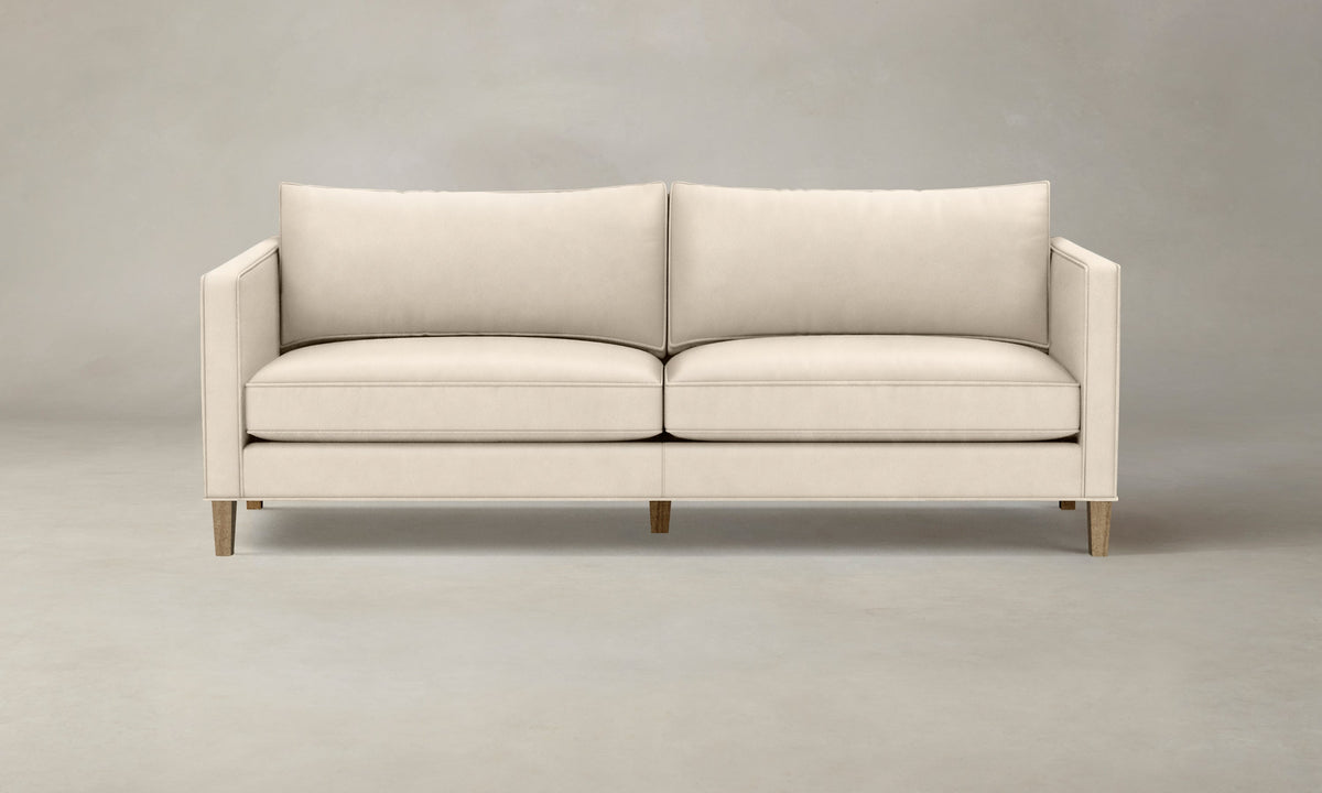 The Crosby Sofa is a testament to the charm of simplicity. With a slender profile that suits spaces small and large, the design is neatly upholstered with cord welts and sits atop tapered legs. Handcrafted in North Carolina.