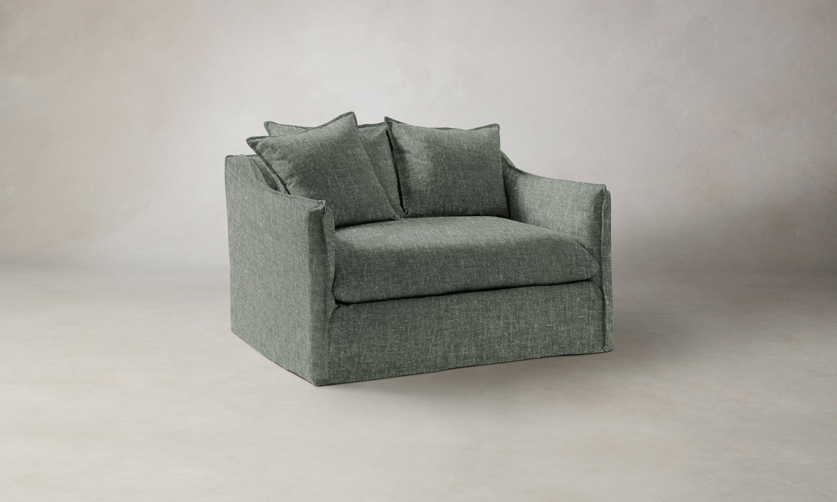 The Dune Chair-and-a-Half is a vision of effortlessness and ease. It boasts a deep seat, plush cushioning, and relaxed slipcover with hand-sewn flange seams for an elegant finish. Handcrafted in North Carolina.