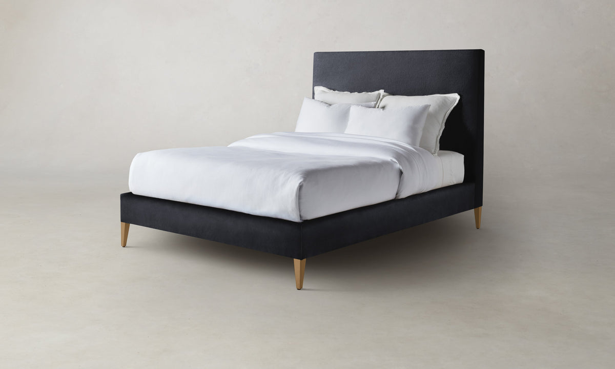 With its clean lines and neat tailoring, the Essex Bed is timeless in the truest sense. It has a fully upholstered frame with mitered corners and rests upon elegantly tapered legs. Handcrafted in North Carolina.