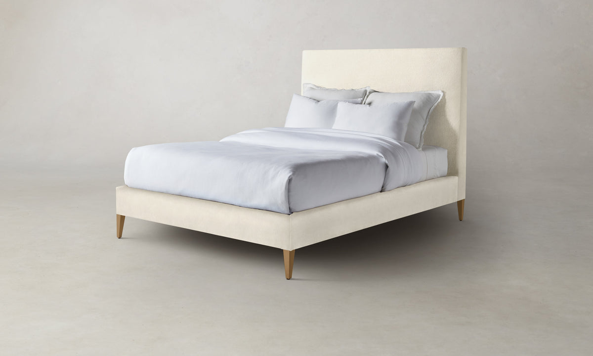With its clean lines and neat tailoring, the Essex Bed is timeless in the truest sense. It has a fully upholstered frame with mitered corners and rests upon elegantly tapered legs. Handcrafted in North Carolina.