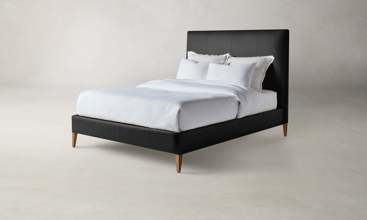 With its clean lines and neat tailoring, the Essex Bed is timeless in the truest sense. It has a fully upholstered frame with mitered corners and rests upon elegantly tapered legs. Handcrafted in North Carolina.
