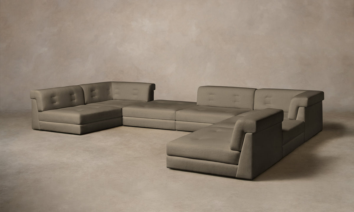 The Forma Modular Sectional has a relaxed appeal and limitless possibilities. Low-lying and gently reclined, each module is masterfully upholstered and detailed with bespoke tufts. Handcrafted in North Carolina.