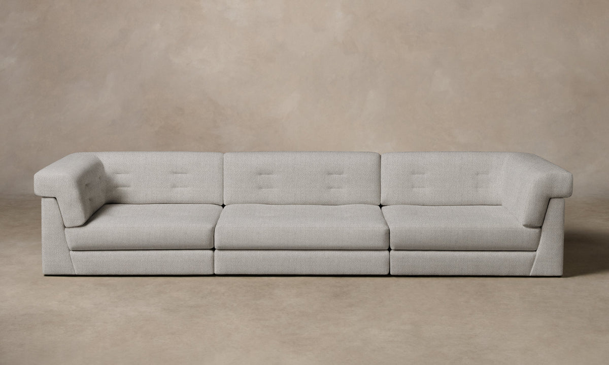 The Forma Modular Sectional has a relaxed appeal and limitless possibilities. Low-lying and gently reclined, each module is masterfully upholstered and detailed with bespoke tufts. Handcrafted in North Carolina.