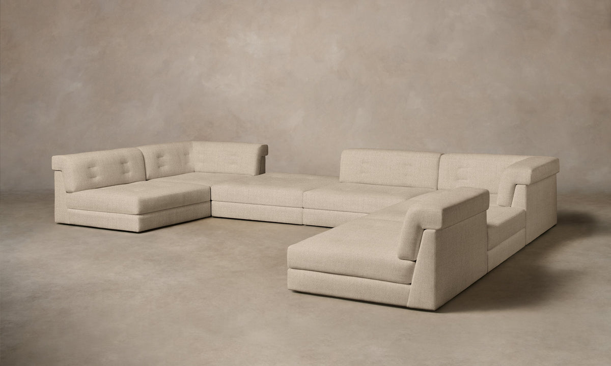 The Forma Modular Sectional has a relaxed appeal and limitless possibilities. Low-lying and gently reclined, each module is masterfully upholstered and detailed with bespoke tufts. Handcrafted in North Carolina.