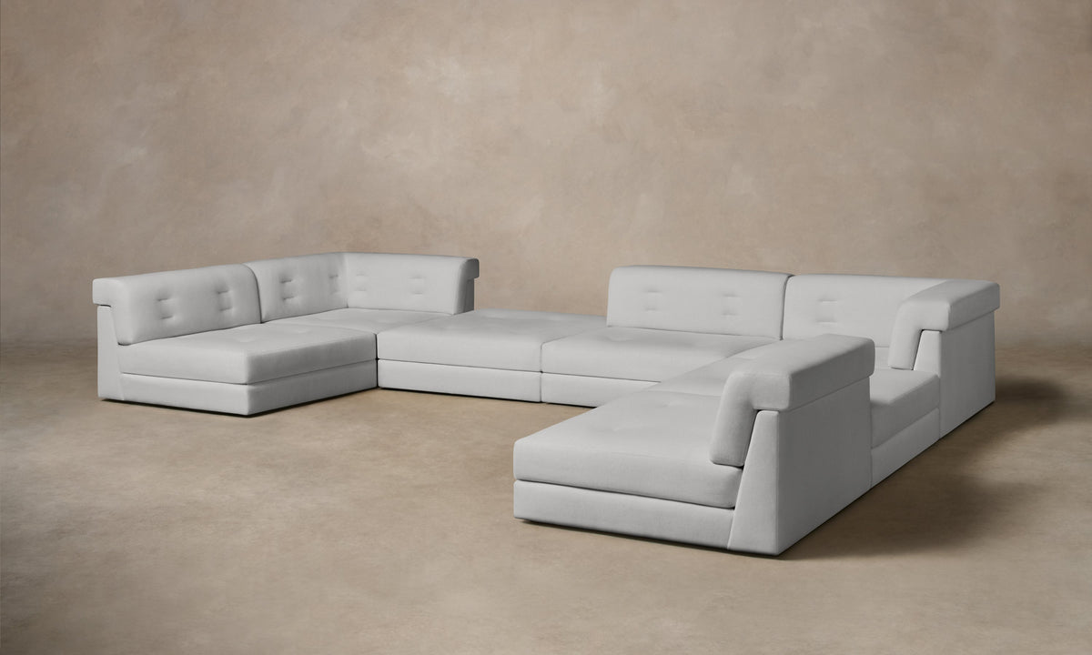 The Forma Modular Sectional has a relaxed appeal and limitless possibilities. Low-lying and gently reclined, each module is masterfully upholstered and detailed with bespoke tufts. Handcrafted in North Carolina.
