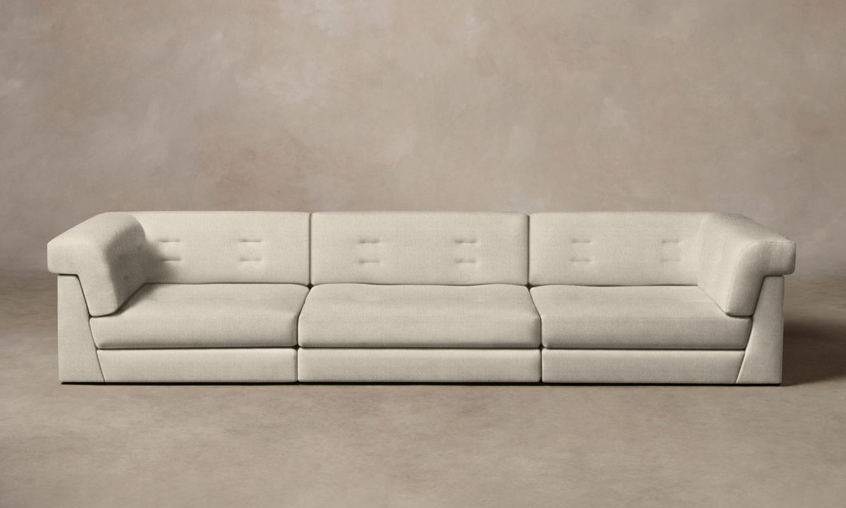 The Forma Modular Sofa has a relaxed appeal and limitless possibilities. Low-lying and gently reclined, each module is masterfully upholstered and detailed with bespoke tufts. Handcrafted in North Carolina.