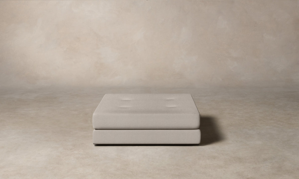 The Forma Ottoman's low-lying silhouette exudes a relaxed appeal. The design is masterfully upholstered and detailed with bespoke tufts. Handcrafted in North Carolina.