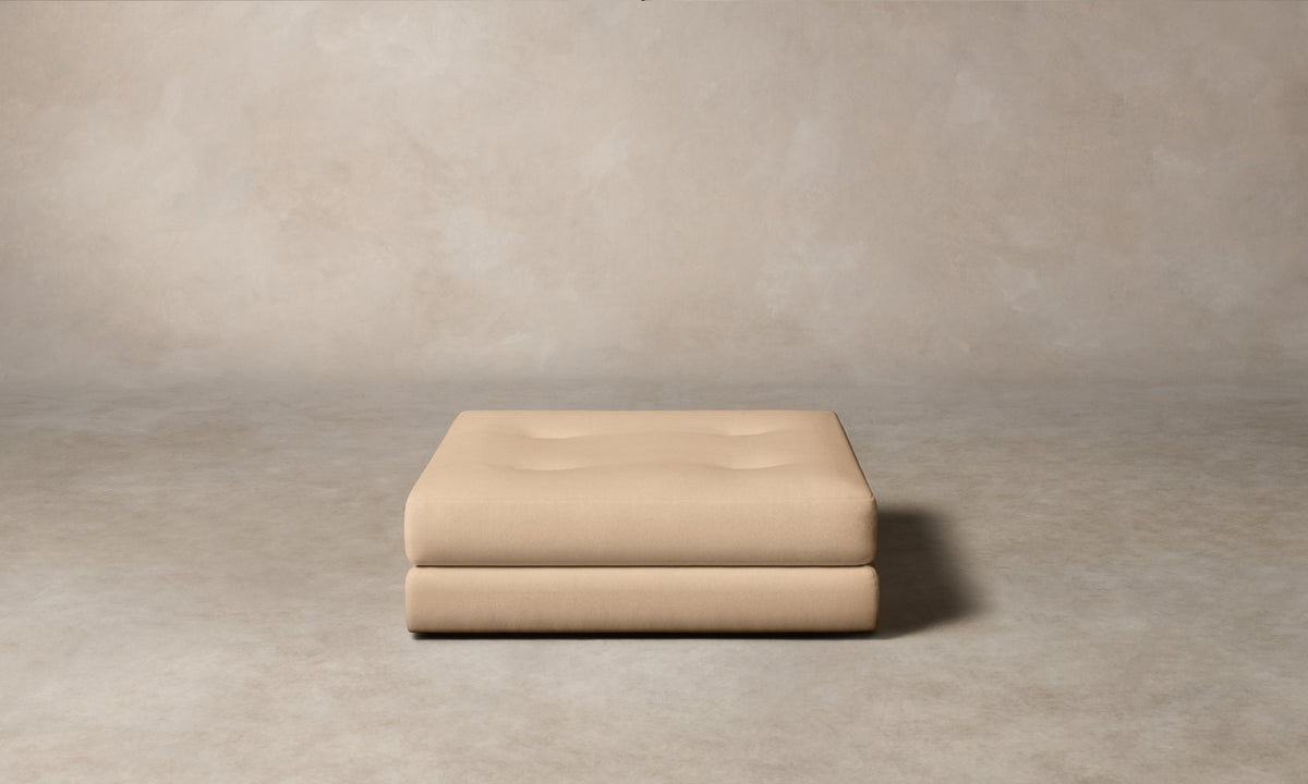 The Forma Ottoman's low-lying silhouette exudes a relaxed appeal. The design is masterfully upholstered and detailed with bespoke tufts. Handcrafted in North Carolina.