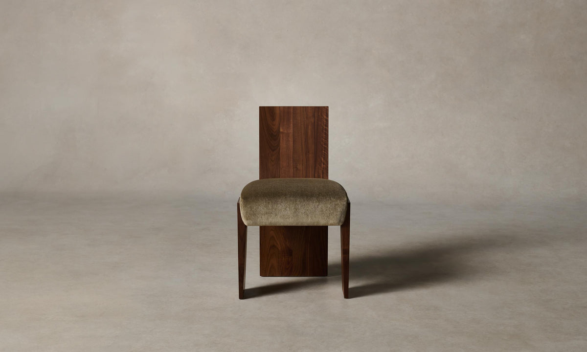 Strong and sophisticated in form, the Garrett Dining Chair stands on monolithic legs that underscore the beauty of solid walnut or white oak. Its seat is masterfully tailored for a clean finish. Handcrafted in North Carolina.