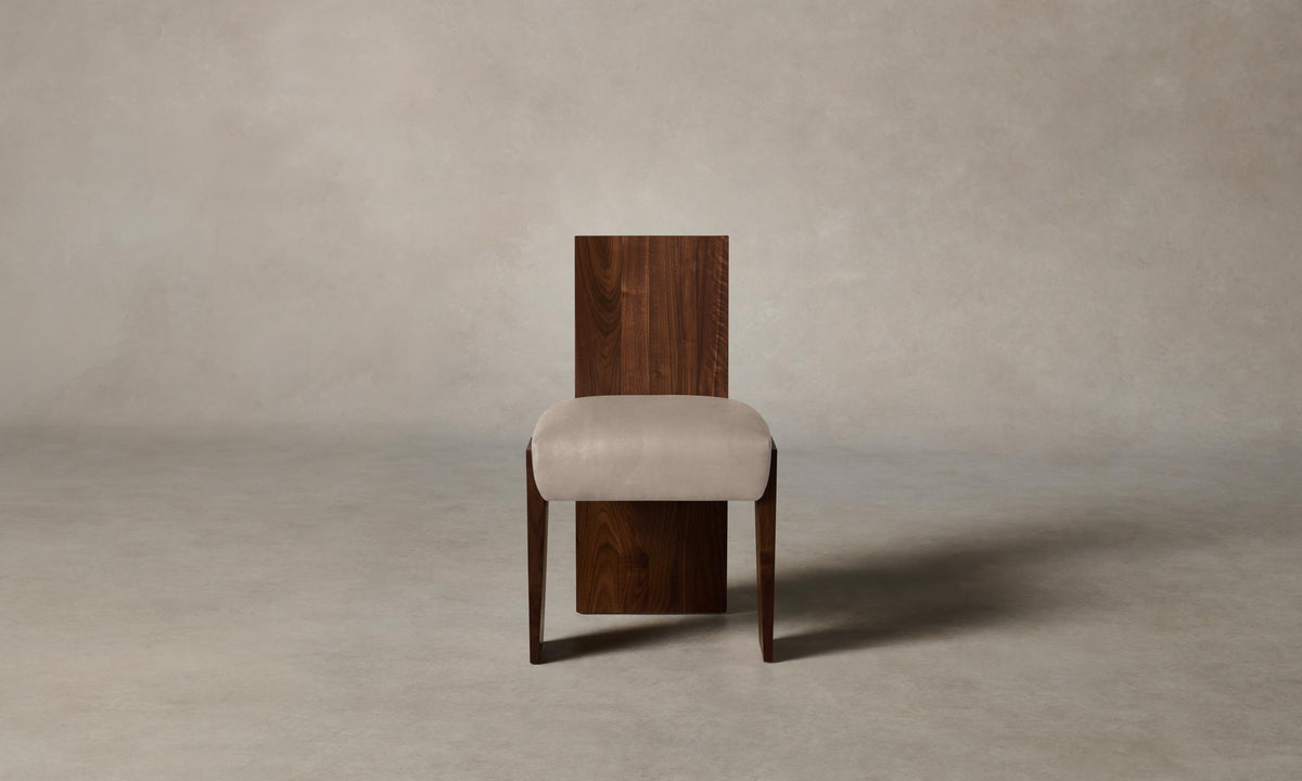 Strong and sophisticated in form, the Garrett Dining Chair stands on monolithic legs that underscore the beauty of solid walnut or white oak. Its seat is masterfully tailored for a clean finish. Handcrafted in North Carolina.