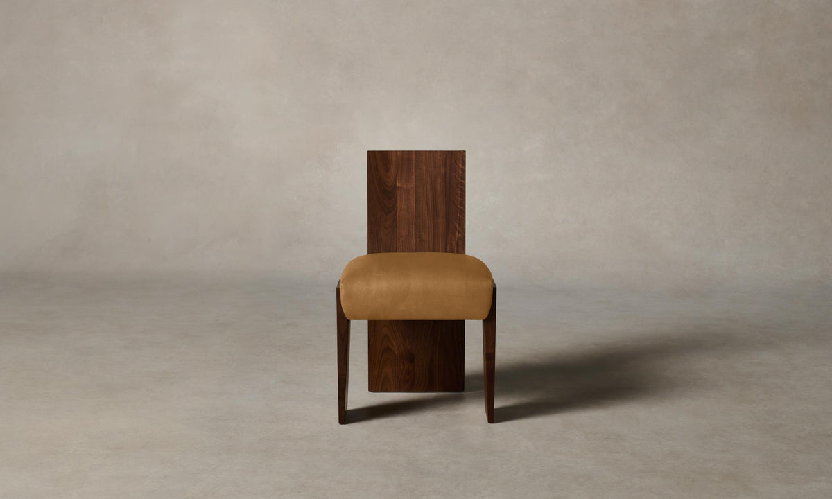 Strong and sophisticated in form, the Garrett Dining Chair stands on monolithic legs that underscore the beauty of solid walnut or white oak. Its seat is masterfully tailored for a clean finish. Handcrafted in North Carolina.