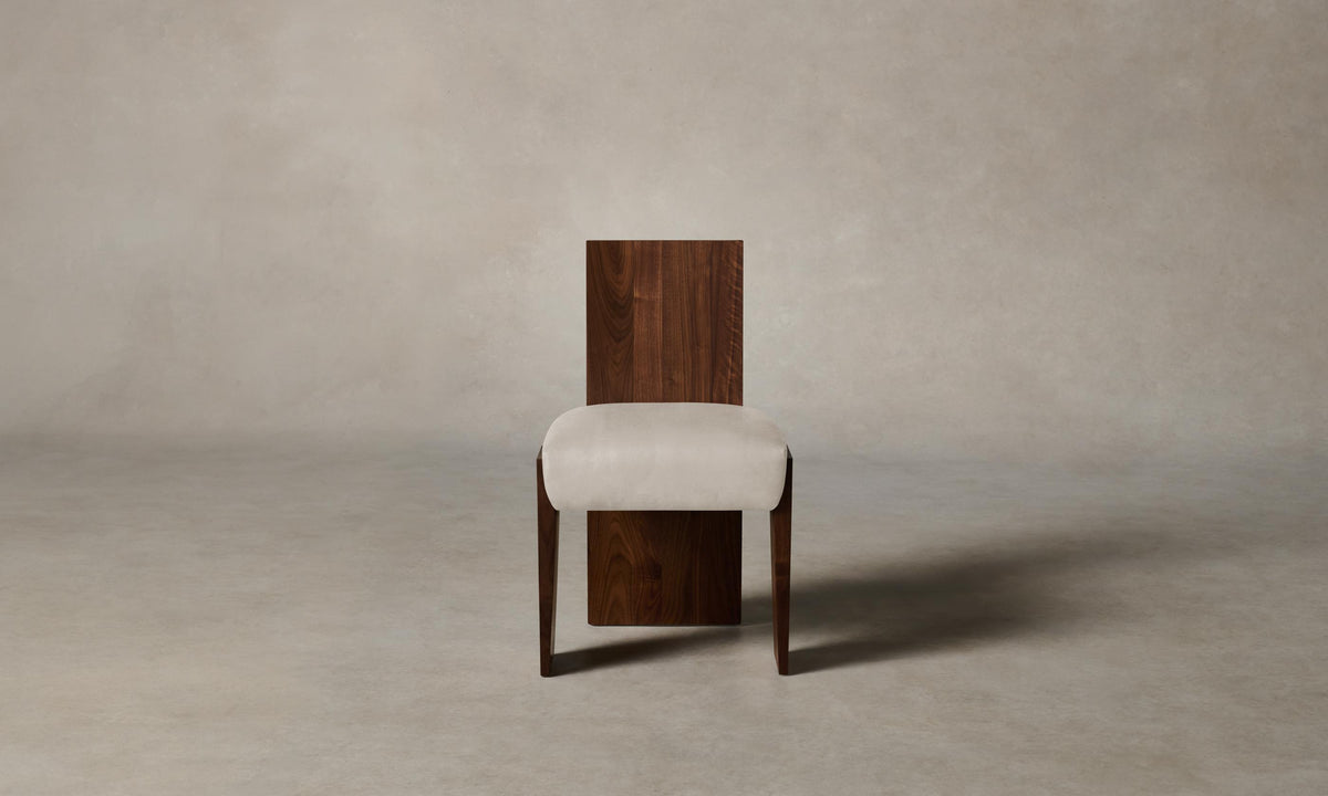 Strong and sophisticated in form, the Garrett Dining Chair stands on monolithic legs that underscore the beauty of solid walnut or white oak. Its seat is masterfully tailored for a clean finish. Handcrafted in North Carolina.