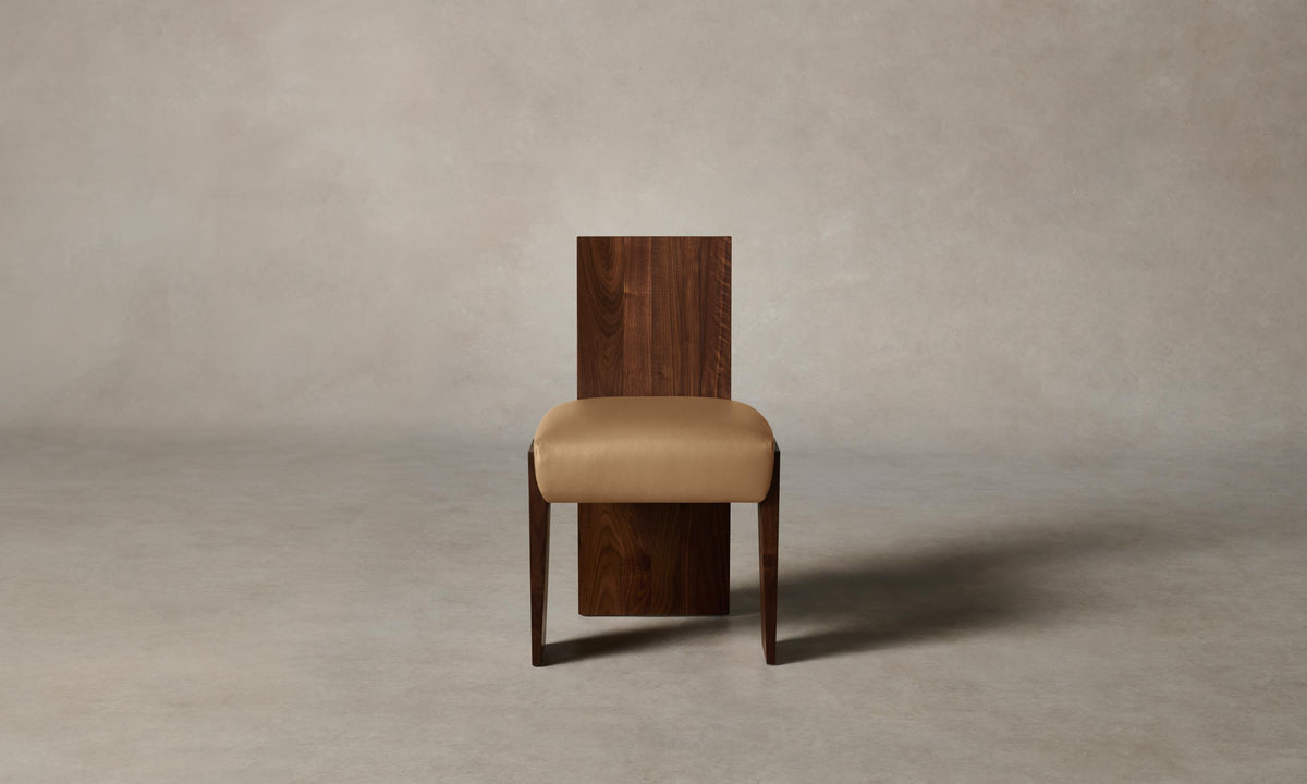Strong and sophisticated in form, the Garrett Dining Chair stands on monolithic legs that underscore the beauty of solid walnut or white oak. Its seat is masterfully tailored for a clean finish. Handcrafted in North Carolina.